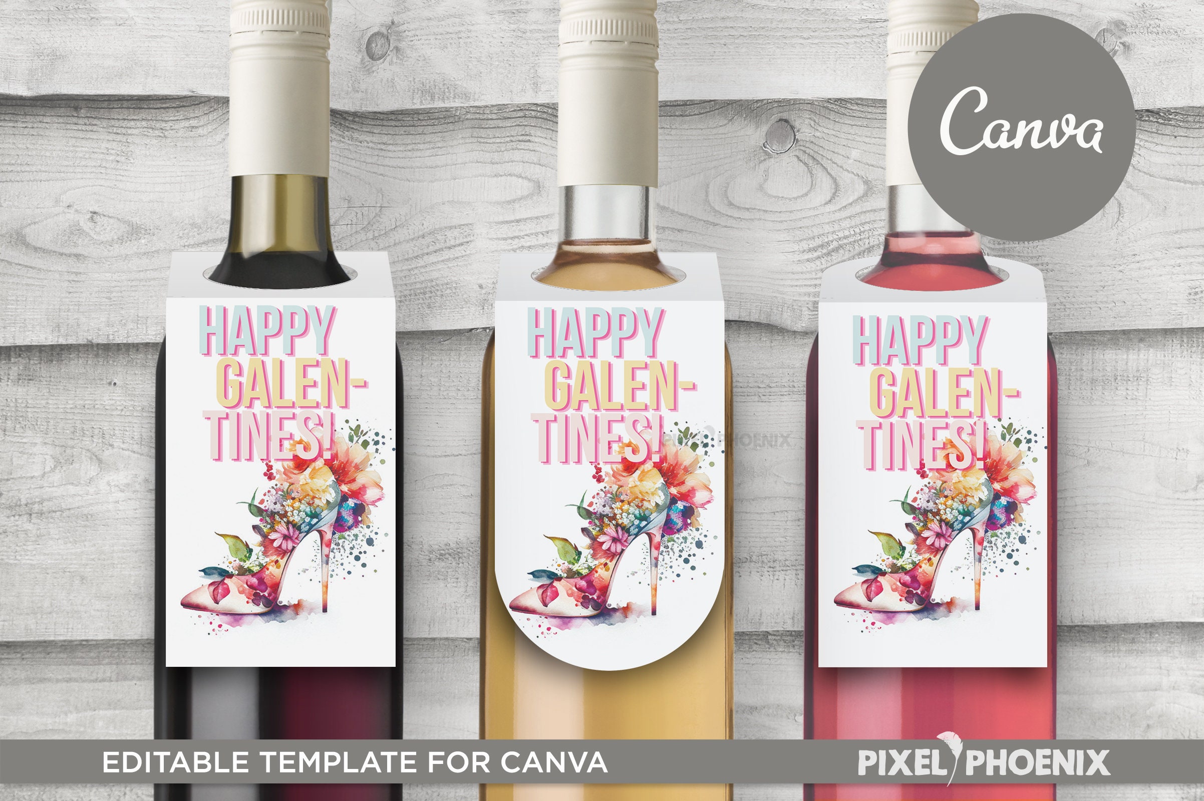 Happy Galentines Wine Bottle Tags Template, Wine Gift Tags, Neck